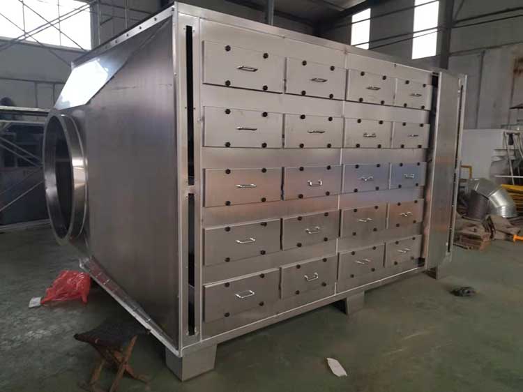 1、活性炭吸附箱是用活性炭的吸附功能,將廢氣吸附在活性炭里面。活性炭無臭無味,具有表面積大吸附為強、純度高、濾速快、質(zhì)量穩(wěn)定,具有絮凝效應(yīng)和助濾效應(yīng)等特點。