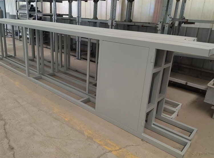 2.2、移動框架室體:由移動龍門架裝置、移動房體支架、伸縮控制連桿室體密封布等組成。