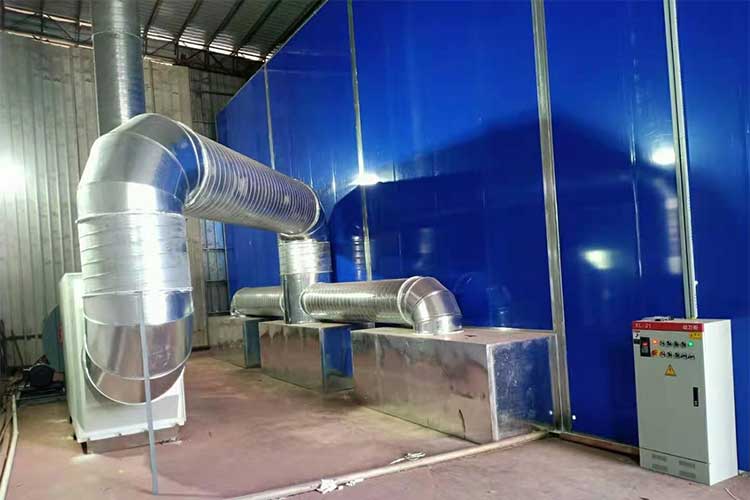 2.2、噴漆室采用上送風側排風玻纖地棉漆霧處理方式的結構形式。