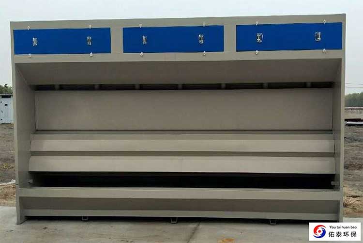 1、水旋柜漆渣從后面打撈,無泵水幕噴漆臺漆渣從后面打撈。