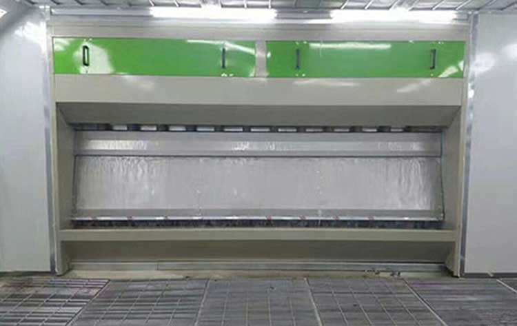 4、利用污水泵提升水箱中的水形成循環水幕,利用離心式風機抽風,對噴漆作業過程中的漆霧有很強的吸附能力。通過獨特的水旋式處理,使漆霧與水汽更好的得到混合,從而落入污水槽中。