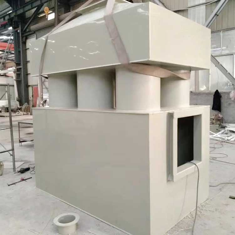 3、2萬風(fēng)量方形旋流噴淋塔尺寸為L2.4*W1.3*H3米,有6個旋流筒。一個水泵,一般使用pp板或201不銹鋼制作。
