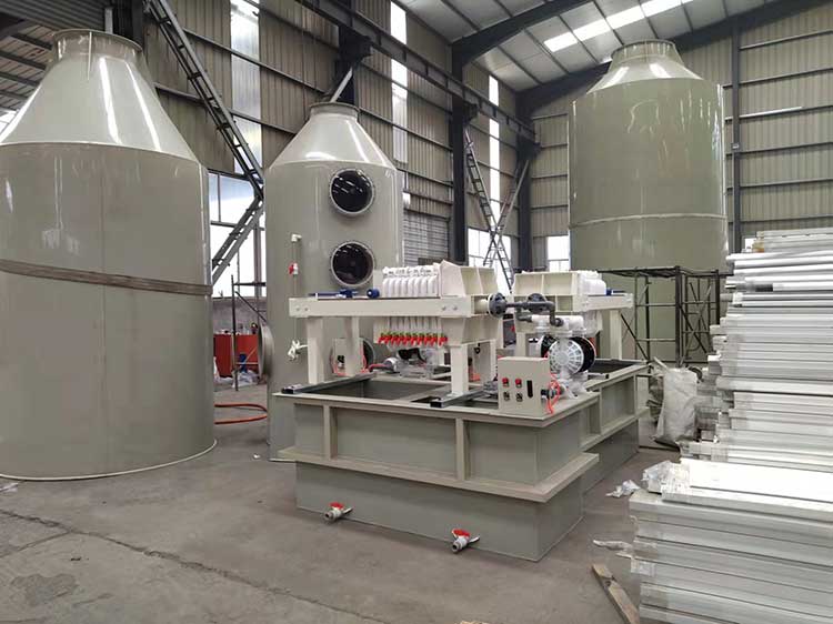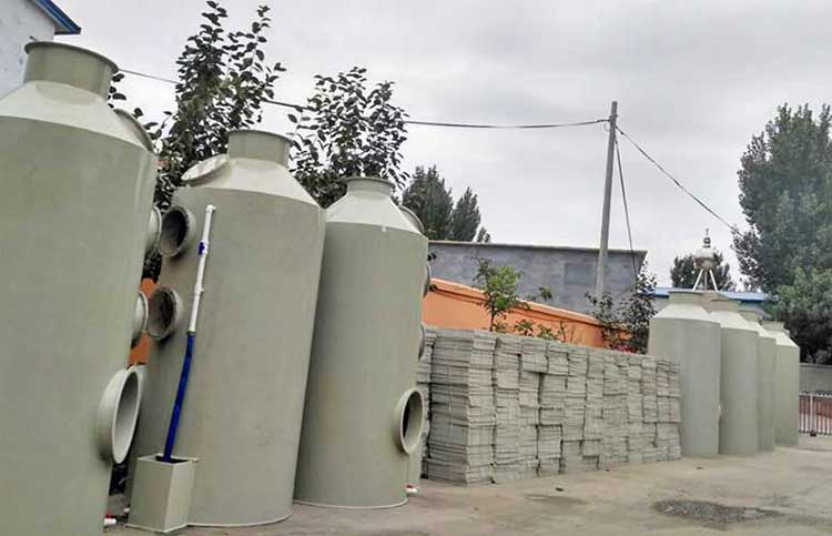 廢氣凈化塔利用氣體與液體間的接觸,而將氣體中的污染物傳送到液體中,然后再將清潔氣體與被污染的液體分離,達到清凈空氣的目的。廢氣經由廢氣凈化塔,采用氣液逆向吸收方式處理,即液體自塔頂向下以霧狀(或小液滴)噴撒而下。廢氣則由塔體(逆向流)達到氣液接觸之目的。此處理方可冷卻廢氣、調理氣體及去除顆粒,再經過除霧段處理后,排入大氣中。