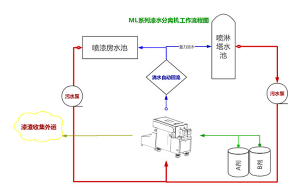 2 工作流程:污水→設備+藥劑=清水(回用)+漆渣(自動分離)