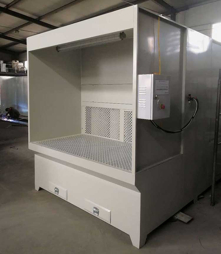 多工位打磨吸塵工作臺工作時,把工件放在工作臺面上打磨,在排風機的抽吸作用下,將工件上打磨出來的粉塵、灰塵等物吸入機內,打磨出來的粉塵不會在操作者的呼吸處停留,而隨抽風的氣流迅速抽進主機里,帶有粉塵的氣流通過百味窗透過濾芯排風過濾系統流向機外,粉塵顆粒經過濾芯過濾后掉下主機的集成箱里,干凈的空氣排出。還有一部分氣體通過回風道經過風口棉,再次過濾吹到工作臺面,從而達到循環的***佳效果。這樣大大改善了工作環境。