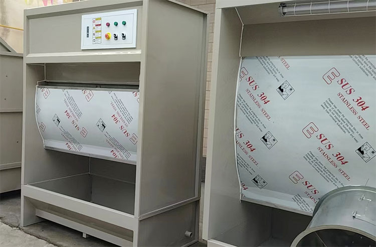 L1.5*W0.9*H2.1m),面板1.0厚鍍鋅板噴塑,水池1.5mm鍍鋅板噴塑。水簾201不銹鋼。一層噴淋,一層浮球。電控箱一個。水泵一個,風機1臺。