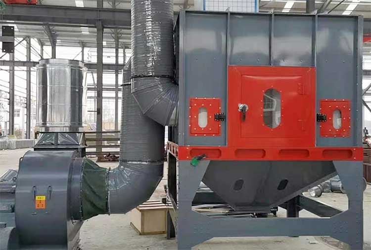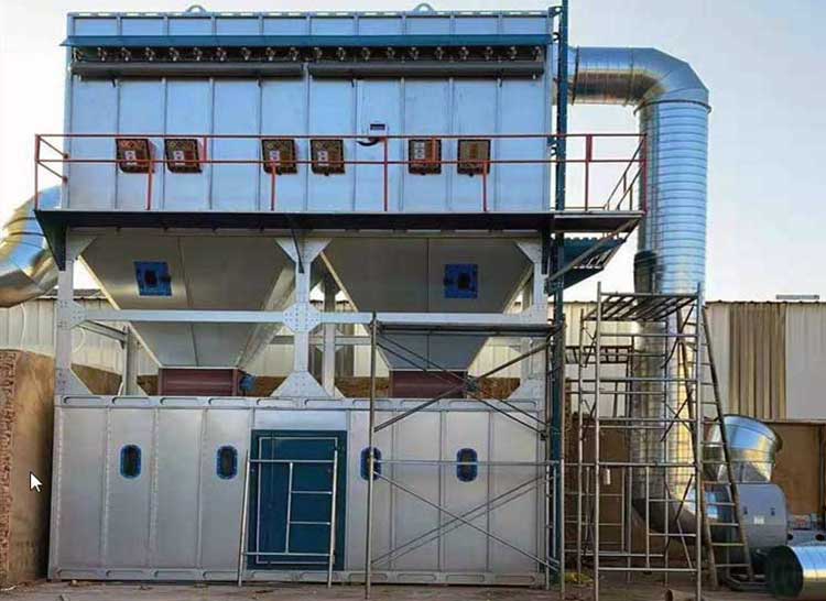 中央除塵設備是將含有木屑顆粒的氣流經(jīng)過風機運輸送至布袋過濾器的導流倉中,氣流在導流板的作用下流速降低,較重的木屑顆粒在重力的作用下落入惠倉里,其中較輕細的粉塵隨氣流向上吸附在濾袋的外表層面上,經(jīng)過布袋的過濾后,干凈的氣體進入排風室中并排到外面。隨著過濾工況的持續(xù),積累在濾袋外表面上的粉塵會越來越多,就會增加系統(tǒng)的運動阻力,降低系統(tǒng)的除塵效率。脈沖幅度和頻率設定完成后,在工作的過程中,系統(tǒng)會自動完成過濾布袋的清灰,從而大大增加濾筒的過濾效率并延長過濾布袋的使用壽命。